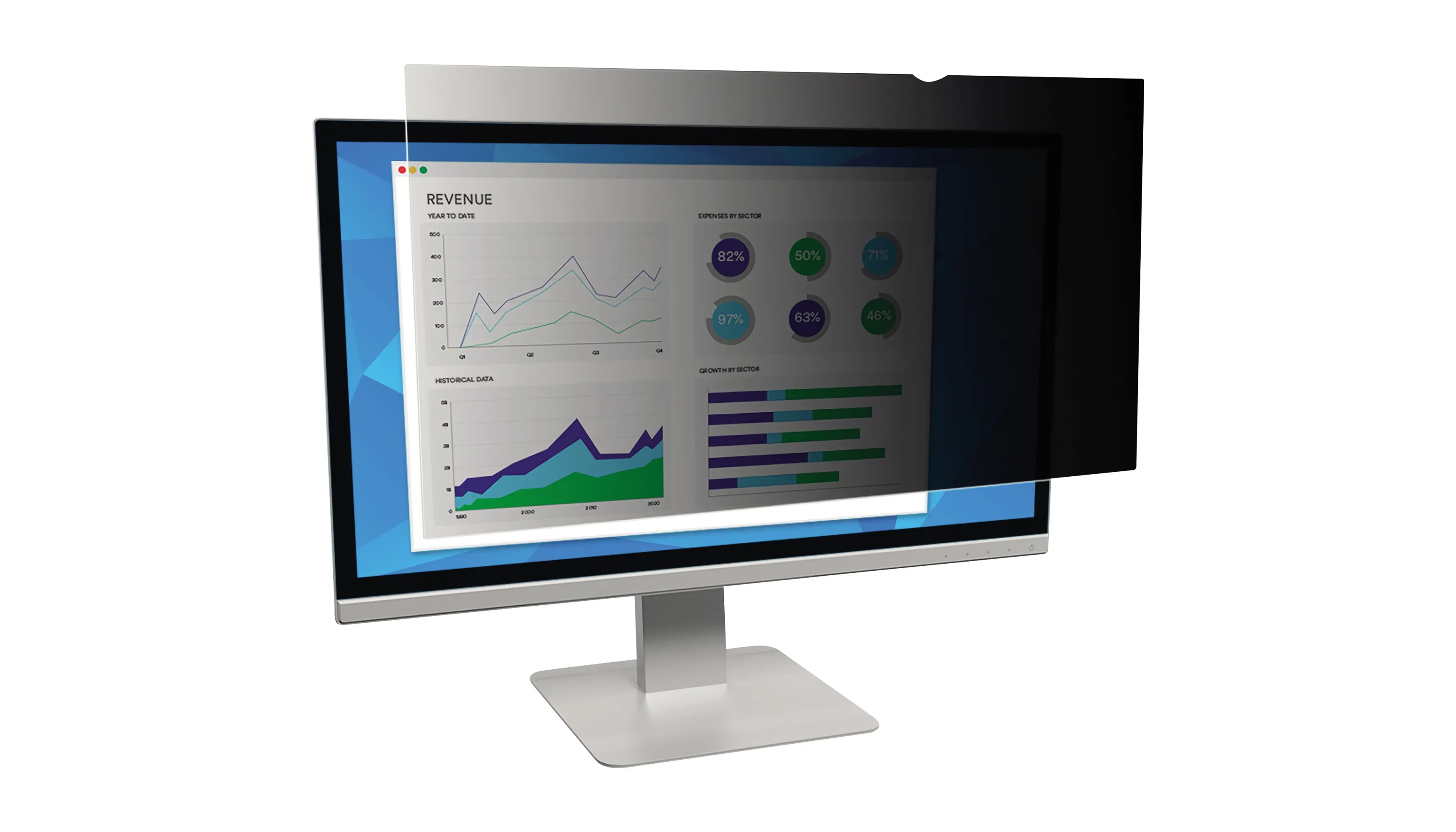 Der 3M™ Blickschutzfilter ist so konzipiert, dass dieser auf Widescreen-Desktop-Monitore passt. Durch die 3M™ Mikrolamellen-Technologie bietet der Filter volle 60° Privatsphäre auf jeder Seite und schützt somit vor ungewollten Blicken. Mit einem einfachen Befestigungssystem kann der Filter leicht für Screen Sharing entfernt werden.