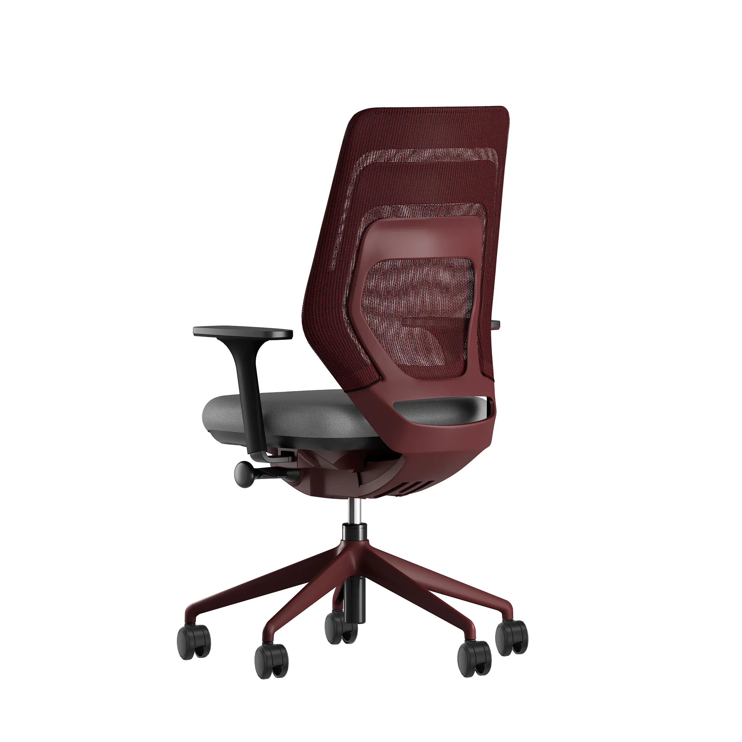 Rückenlehne, Mechanikverkleidung, Armlehne und sogar das Fußkreuz sind in einer Farbe gearbeitet. Eine komplett neue Optik, die sich in alle Bereiche der modernen Arbeitswelt harmonisch integrieren lässt. Die Farben Dunkelrot und Dunkelgrün setzen darüber hinaus noch individuelle Farbakzente und sorgen für ein wohnliches Ambiente.