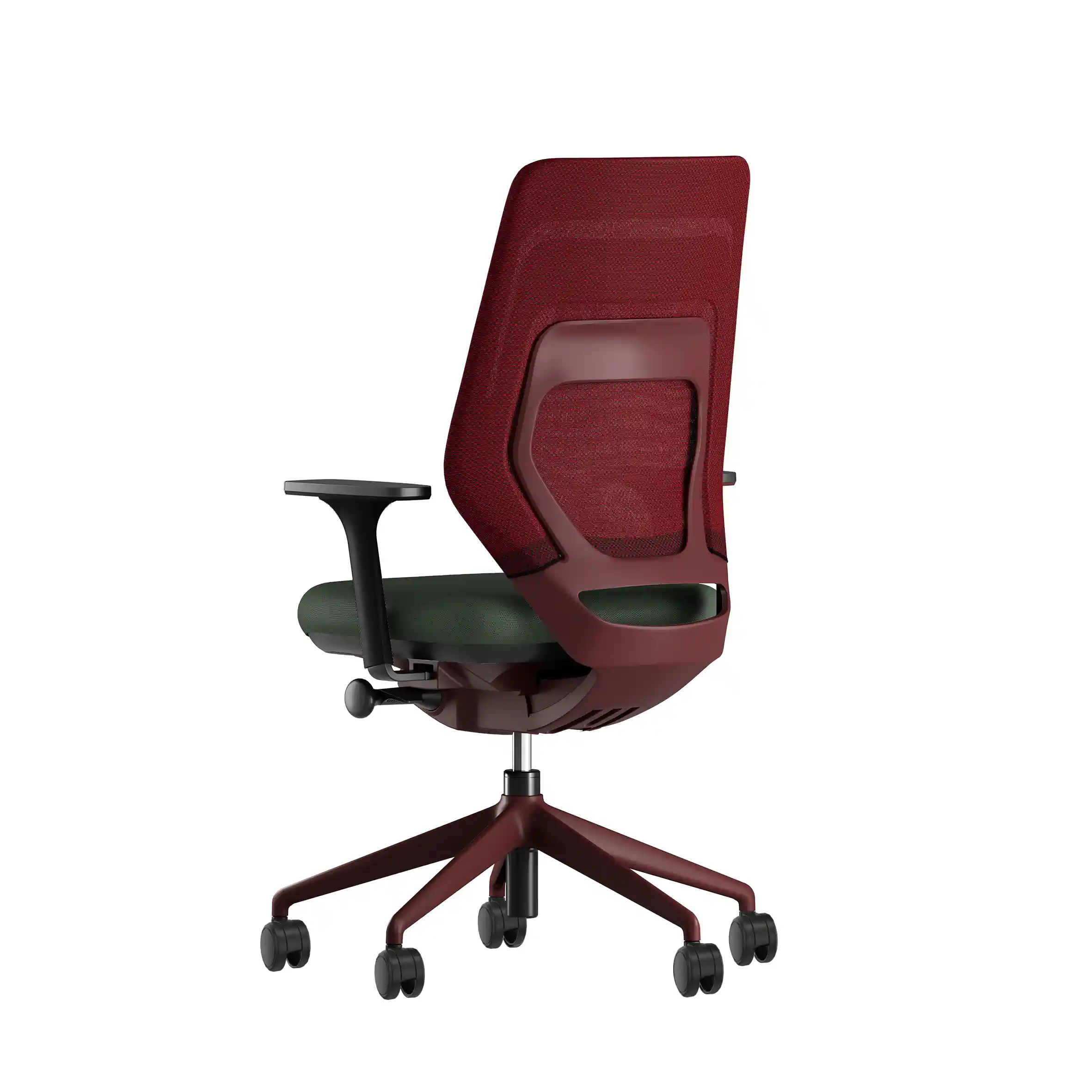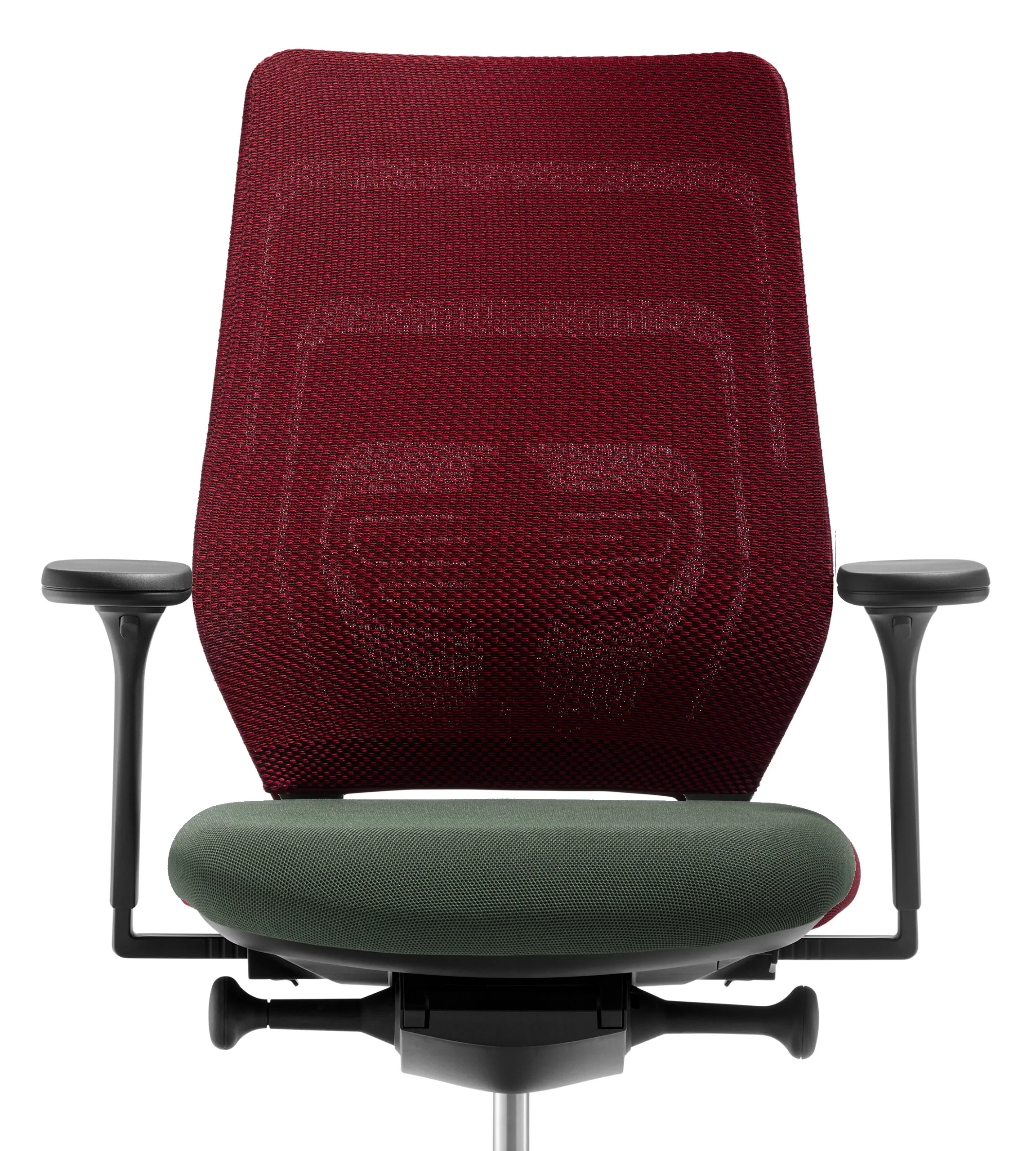 Rückenlehne, Mechanikverkleidung, Armlehne und sogar das Fußkreuz sind in einer Farbe gearbeitet. Eine komplett neue Optik, die sich in alle Bereiche der modernen Arbeitswelt harmonisch integrieren lässt. Die Farben Dunkelrot und Dunkelgrün setzen darüber hinaus noch individuelle Farbakzente und sorgen für ein wohnliches Ambiente.