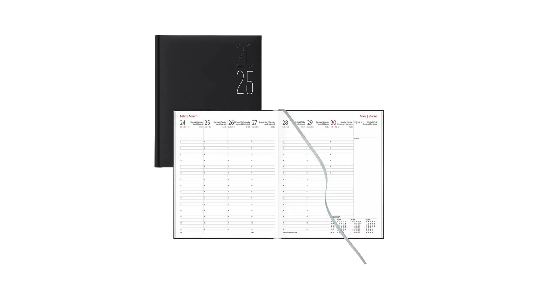 - Ausführung der Kalenderaufteilung: 1 Woche /2 Seiten
