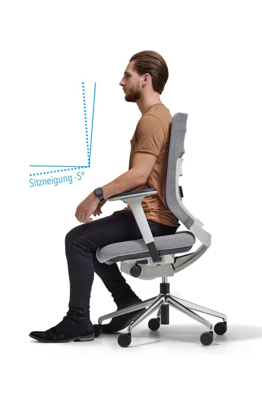Rückenunterstützung. Die Sitzneigung beträgt max -5°.