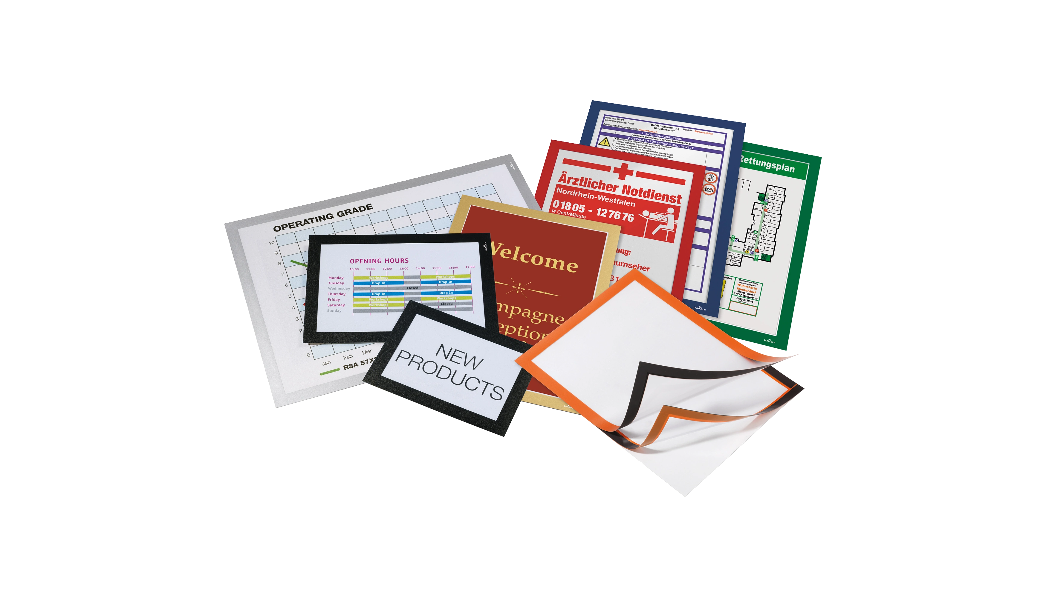 Der Info-Rahmen kann an tragfähige, glatte Oberflächen geklebt und z. B. von Glas wieder entfernt werden. Für Dokumente wie z. B. Raumkennzeichnung, Orientierungsinformationen und Angebote. Schnelles Einlegen und einfaches Auswechseln von Dokumenten durch aufklappbaren Magnetrahmen. Doppelseitige Lesbarkeit an Glasflächen durch 2 Einlagen. Identische Optik des Rahmens von beiden Seiten. Anwendbar im Hoch- und Querformat.