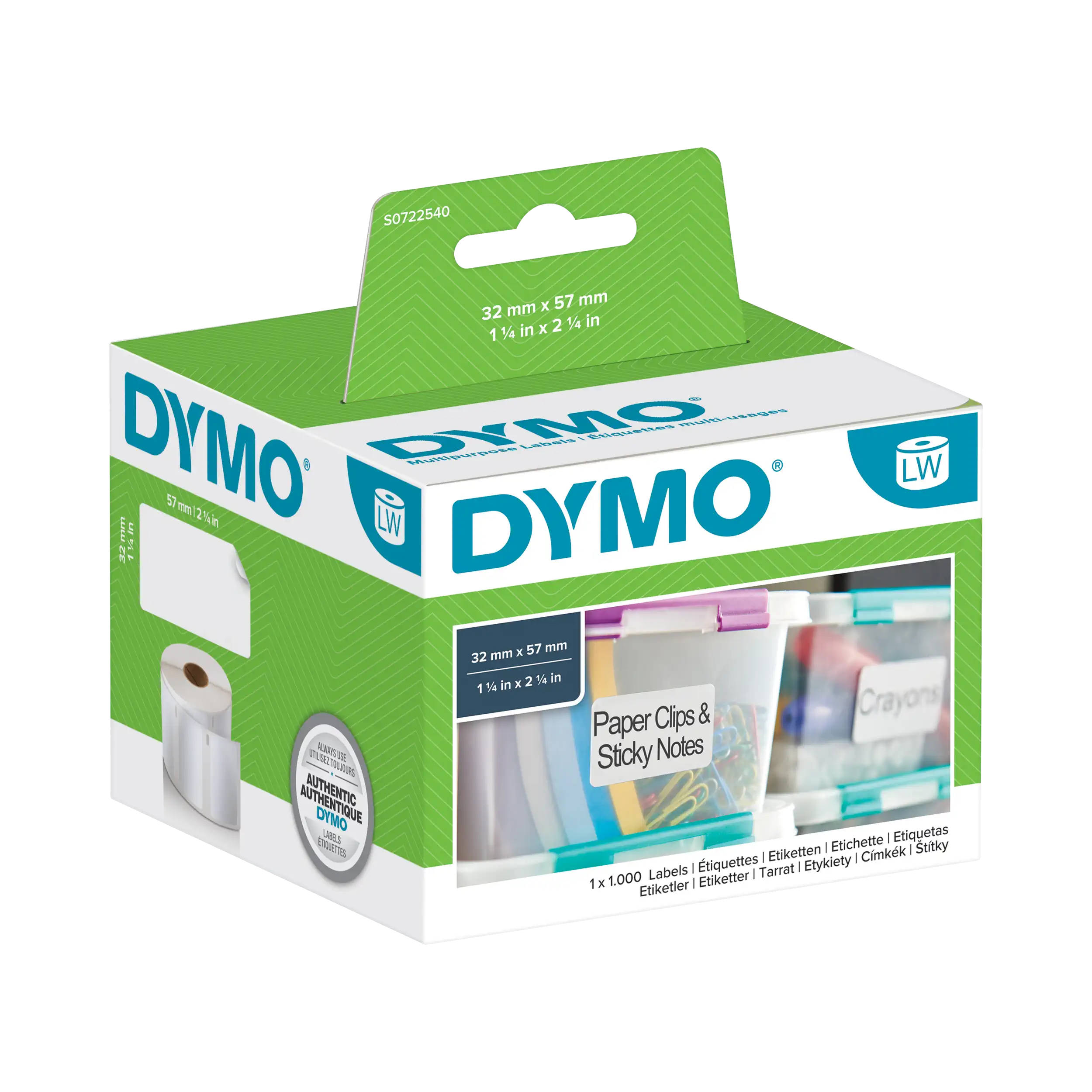 DYMO® Vielzwecketikett Original 32 x 57 mm (B x H) 1.000 Stück/Rolle weiß