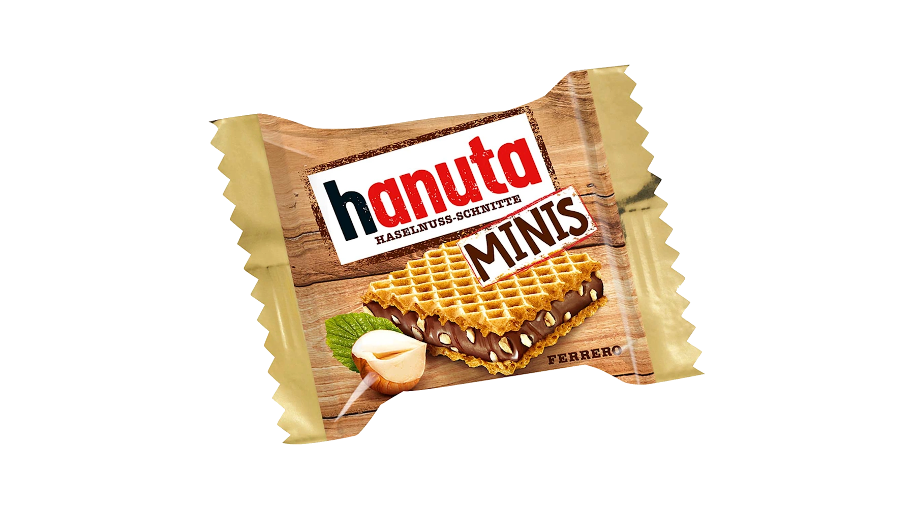 hanuta Haselnuss-Schnitten minis – das ist die kernig knusprige, nussige Süßigkeit für zwischendurch. Die beliebte Haselnuss-Schnitte mit einer Creme aus frisch gerösteten Haselnüssen und herb-aromatischem Kakao zwischen zwei knusprigen Weizenwaffeln schmeckt einfach unwiderstehlich gut.