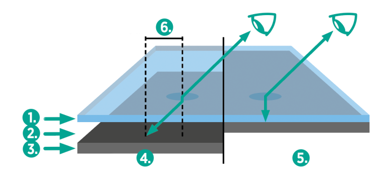 1. Glas, 2. Luft, 3. LCD, 4. ohne Zero Gap, 5. mit Zero Gap, 6. Touch Abweichung