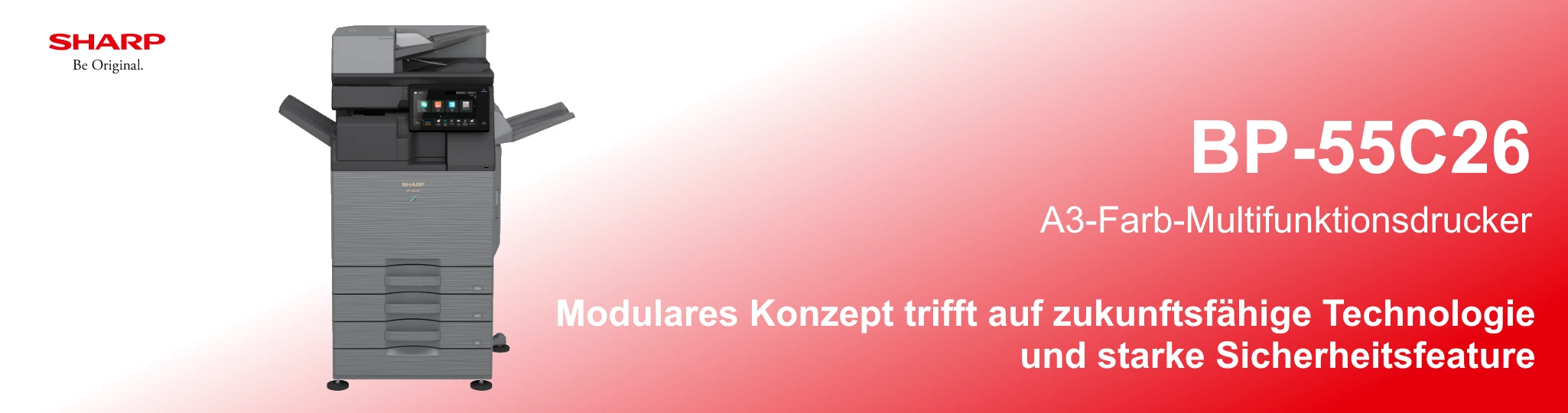 Der BP-55C26 ist eine sichere Drucklösung für den Arbeitsplatz der Zukunft. Er sorgt für mühelose Konnektivität, Sicherheit und Nachhaltigkeit und bietet gleichzeitig überlegene Funktionen, die das hybride Arbeiten erleichtern.