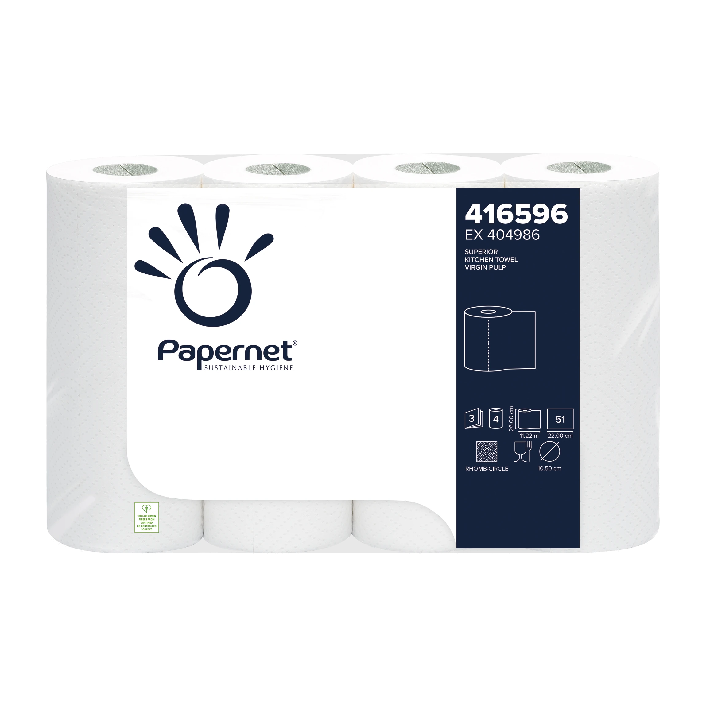 Produktinformationen "PAPERNET Küchenrollen Superior 3-lagig Zellstoff 4 Rollen/Pack weiß"
