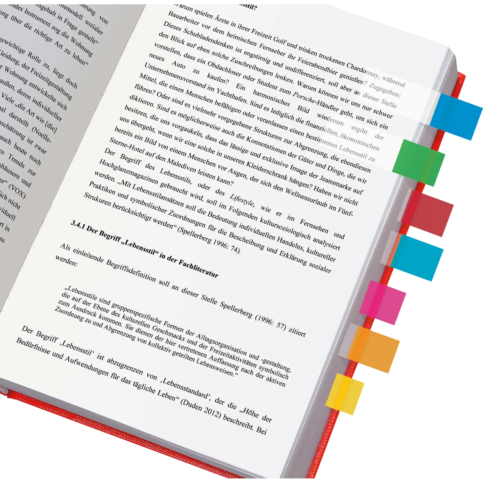 Die Marker setzen sich aus einem transparenten, klebenden Teil und einer nicht klebenden Farbfläche zusammen. Ihr Vorteil: markierter Text ist unter der transparenten Folie weiterhin gut lesbar.