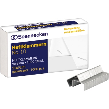 Produktinformationen "SOENNECKEN Heftklammern Nr.10 verzinkt 1.000 Stück/Pack silber"
