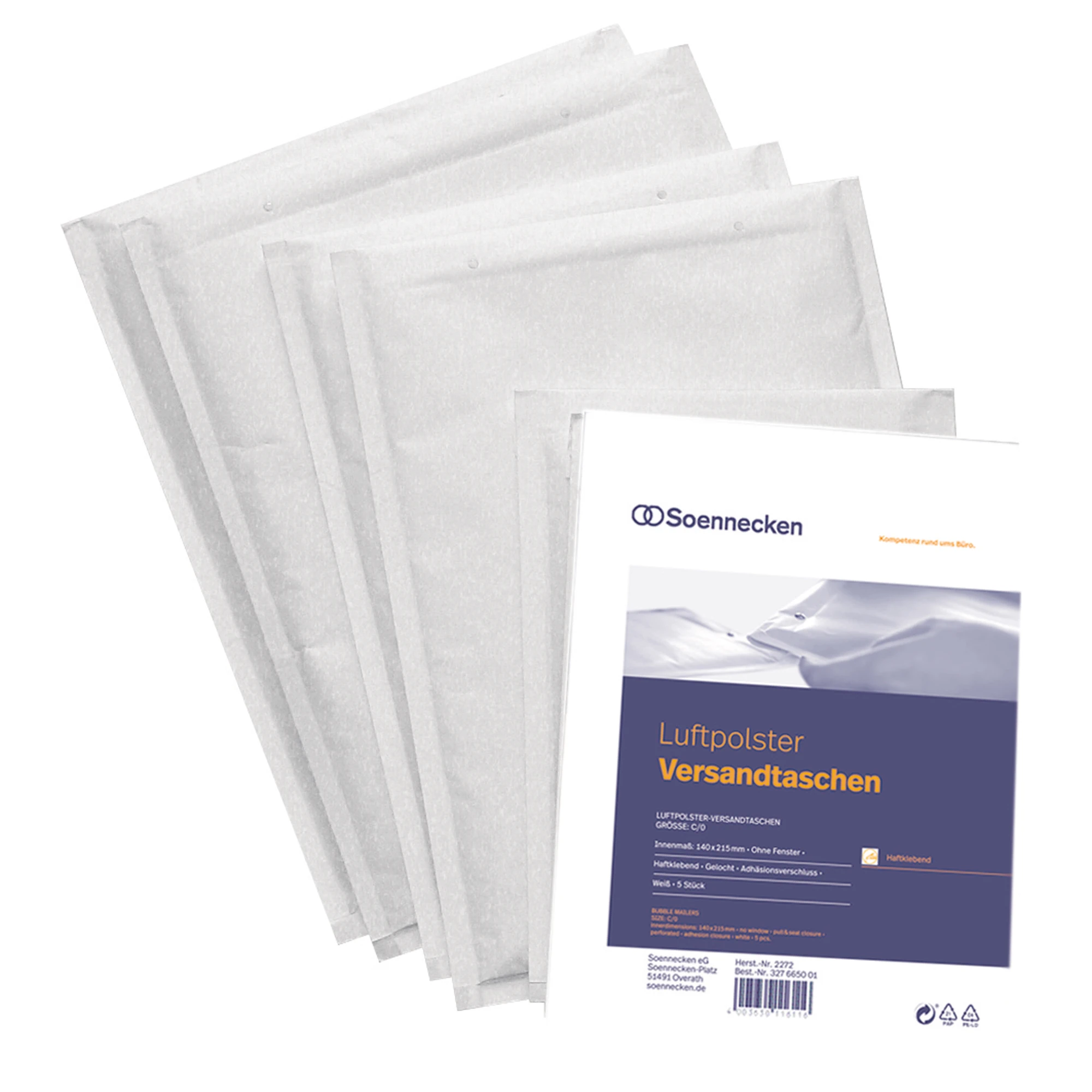 Produktinformationen "SOENNECKEN Luftpolstertaschen D/1 170 x 265 mm weiß 16 g 5 Stück/Pack"