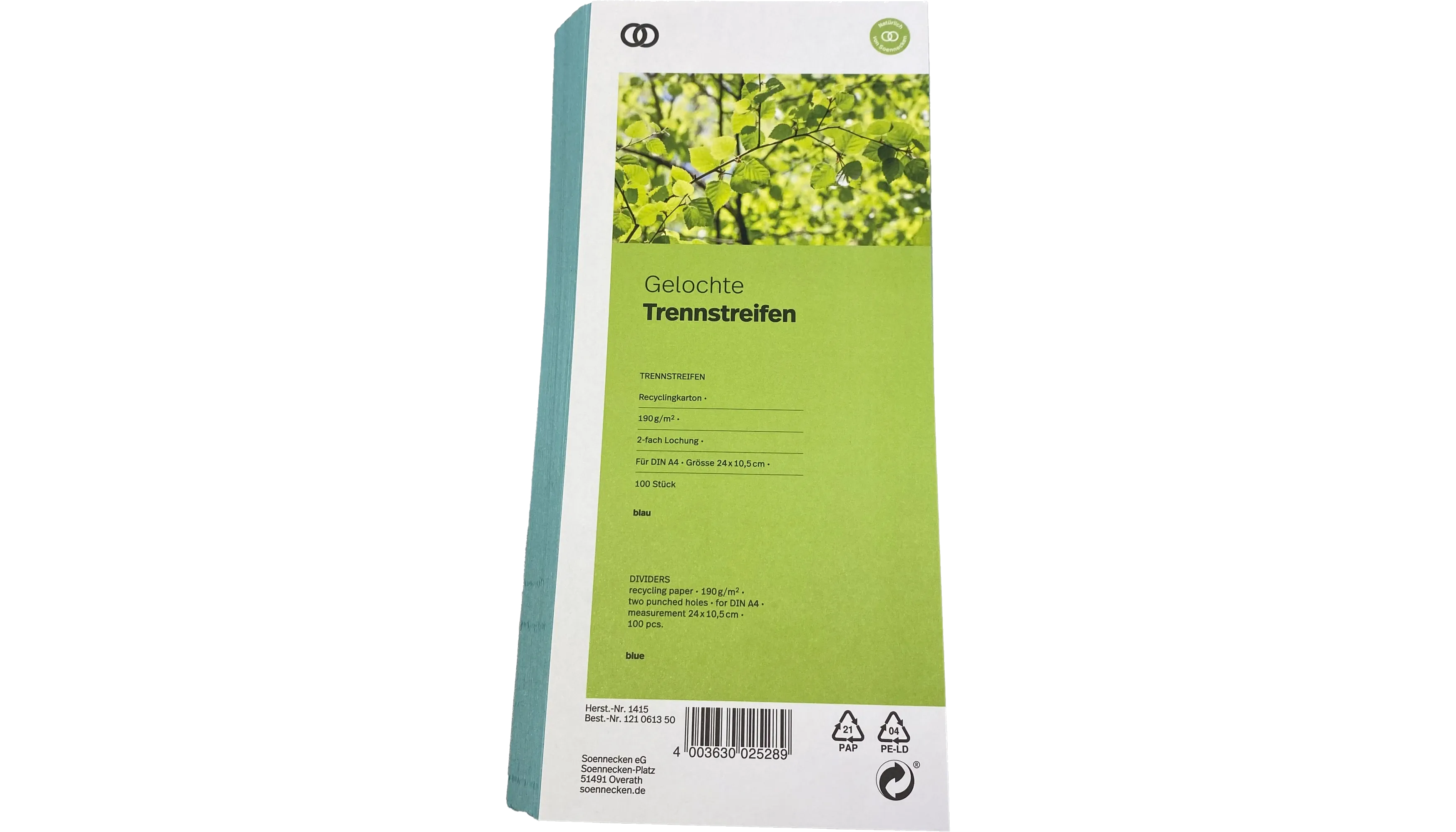 Produktinformationen "SOENNECKEN Trennstreifen oeco 100 Stück/Pack blau"