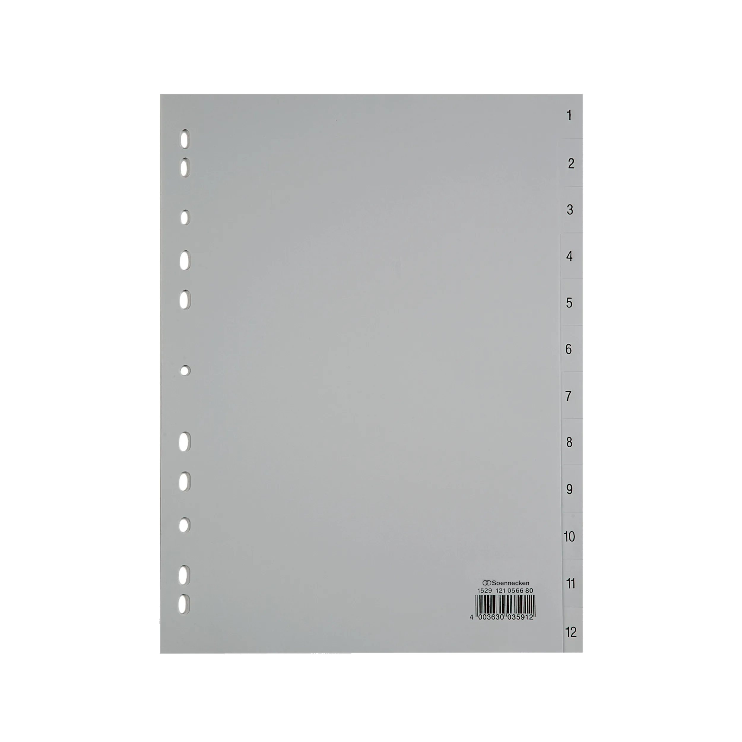 Produktinformationen "SOENNECKEN Zahlenregister DIN A4 22,5 x 29,7 cm 1-12 volle Höhe grau"