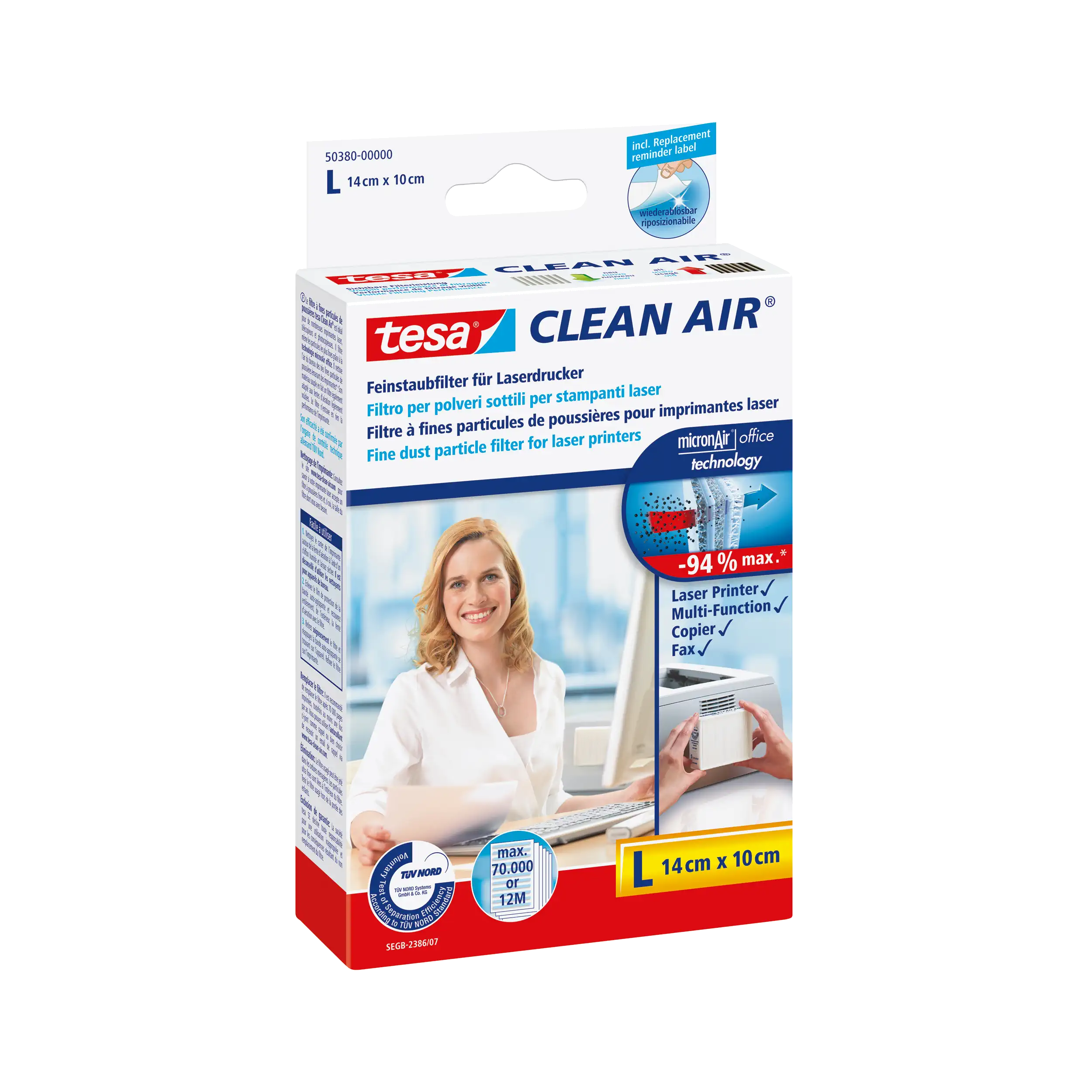 Der tesa Clean Air® Feinstaubfilter sorgt für gute Luft in Unternehmen, Behörden und im Büro zu Hause. Sauber und sicher. Schutz vor Feinstaub und Tonerstaub. tesa Clean Air® hält bis zu 94 % aller Feinstaubpartikel zurück. Dauerhafter Rückhalt feinster Partikel durch patentierten, dreilagigen Filter (micronAir® office-Technologie). Hohe Luftdurchlässigkeit gewährt uneingeschränkte Funktionalität des Druckers. Unkompliziert und langlebig. Leichte Befestigung durch innovatives Klettsystem. Einfache Entsorgung über den Hausmüll möglich. Der Filter ist vollständig veraschbar.