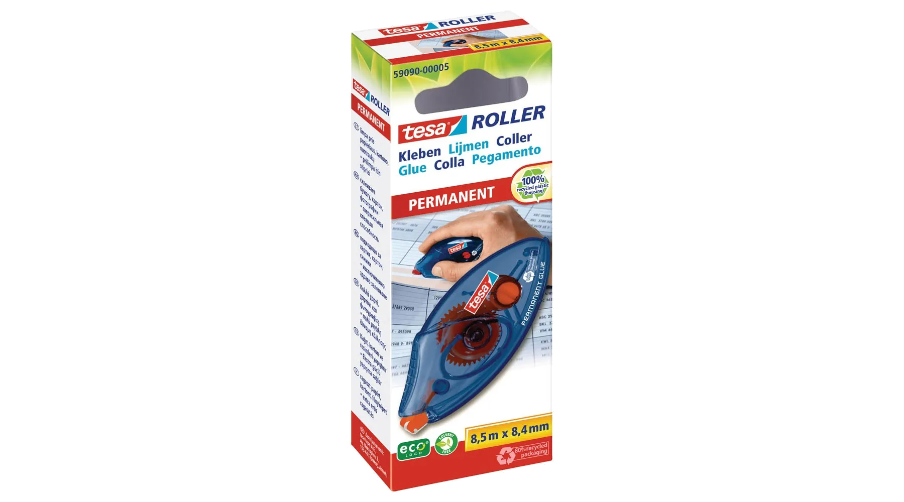 Der tesa® Kleberoller permanent ecoLogo® ist ideal für eine saubere, dauerhafte und starke Verklebung geeignet. Zudem wurde der tesa® Kleberoller permanent ecoLogo® im ÖKO-TEST Magazin 11/2013 im Test Bastelmaterialien mit "sehr gut" bewertet. Rötlicher Klebestreifen macht bereits aufgetragenen Kleber sichtbar. Praktisch und handlich.