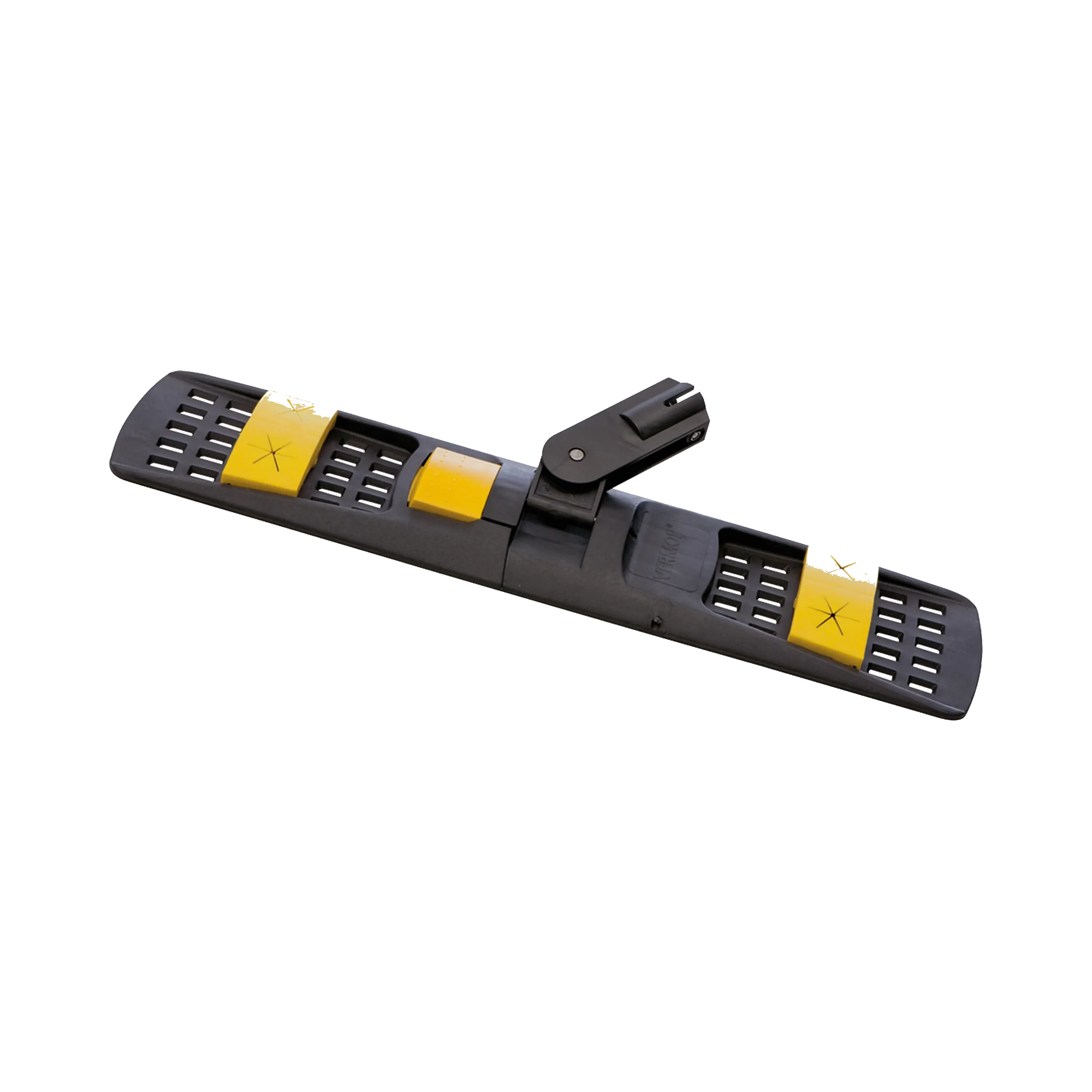Der Sprint Plus Halter zeichnet sich besonders durch sein geringes Gewicht und eine große Auflagefläche aus. Mit seiner patentierten Tritt-Taste lässt er sich einfach öffnen und schließen. Durch Öffnungen im Halter kann in der Schüttmethode Flotte direkt auf den Mop gegeben werden.